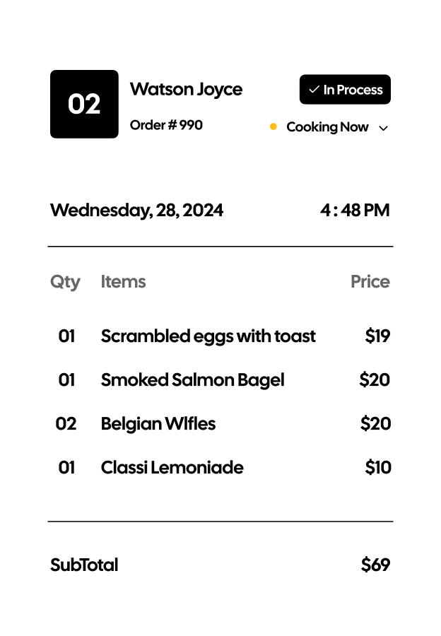 We offer a fast, accurate order-and-payment solution designed for simple, self-serve menus—ideal for cafes and fast-food spots with high turnover. Boost efficiency and reduce costs with kiosk/QR ordering, integrated delivery management, and data-driven insights.